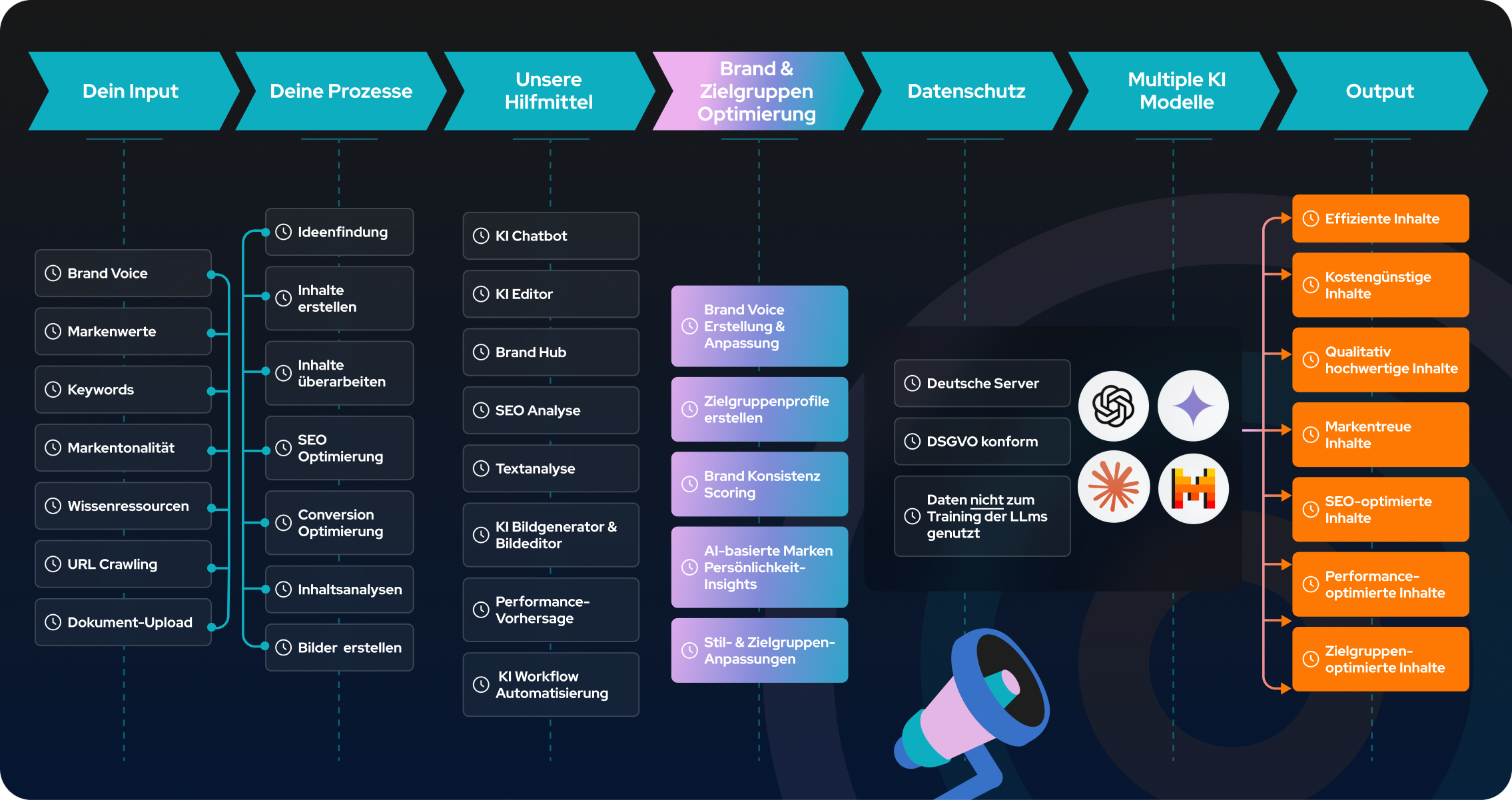 Nutze vielseitige KI Lösungen, die dir helfen, Inhalte zu erstellen, zu optimieren und zu verwalten – alles in einer Software.