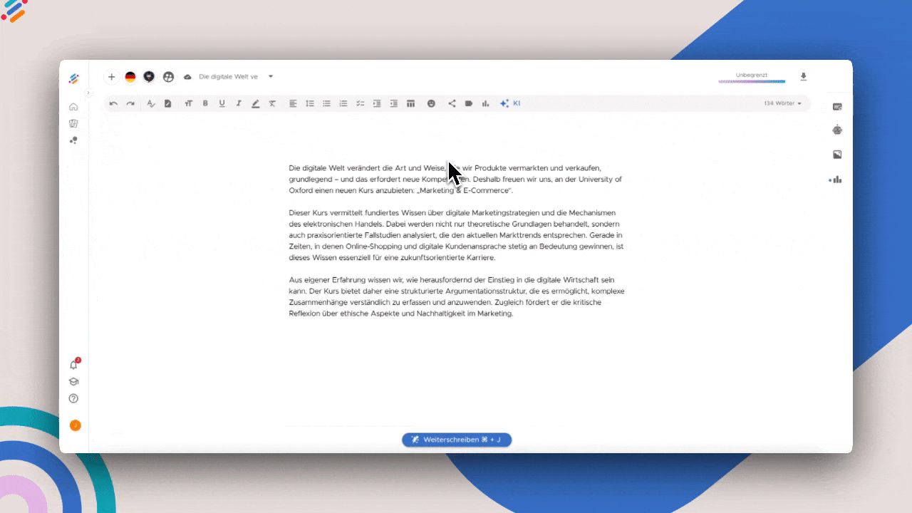 → Möchtest du besonders emotional schreiben? Oder eher sachlich? Auch das Format (z. B. Social Media Post, E-Mail, Fachtext) beeinflusst den Stil.