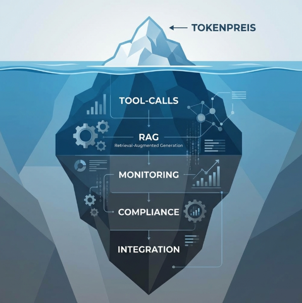 - Tokenpreise allein sind kein Entscheidungsfaktor – echte Kosten entstehen durch Tool-Calls, RAG-Architektur, Monitoring und organisatorischen Overhead (TCO).