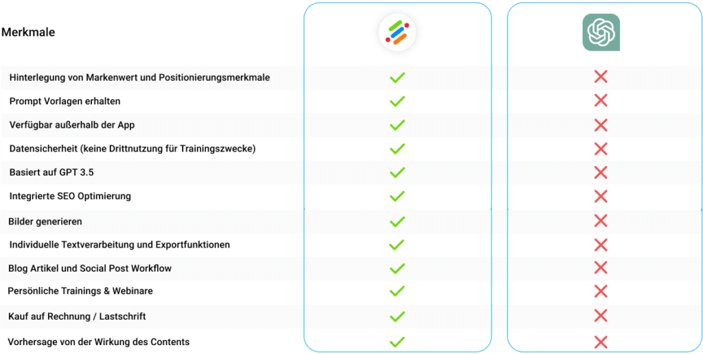 Durch die Nutzung der Leistungsfähigkeit von GPT-3 und GPT-4 bietet neuroflash eine umfassende Suite von Anwendungen für die Erstellung von Inhalten, KI-Chatbots, die Beantwortung von Anfragen und vieles mehr. Diese hochmoderne Technologie ermöglicht es Anwendern, auf der Grundlage einer kurzen Eingabe verschiedene Texte und Dokumente zu erstellen, die ihresgleichen suchen. Mit über 100 verschiedenen Textarten kannst du dich auf die KI von neuroflash für jeden erdenklichen Zweck verlassen! Ganz gleich, ob du überzeugende Produktbeschreibungen oder ansprechende Marketingtexte erstellen möchtest.