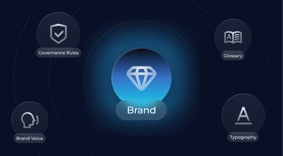 Die Brand Voice speichert Tonalität, Stilregeln und sprachliche No-Gos in einem KI-Profil. Jeder generierte Text wird automatisch gegen dieses Profil geprüft. Zusätzlich bündelt der Brand Hub alle Guidelines und Templates an einem zentralen Ort für das gesamte Team.