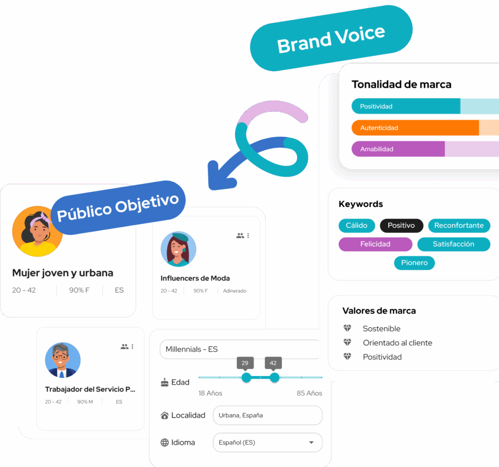 Hub para guardar tu brand voice, público objetivo y conocimiento para contenido fiel a la marca y dirigido.